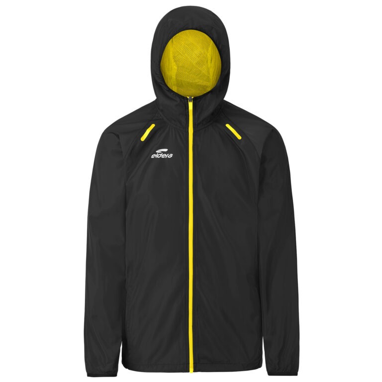 • Coupe vent en polyester avec finition hydrofuge (membrane déperlante ayant une résistance limitée à la pénétration de l’humidité • Capuche doublée en mesh • Poches latérales zippées contrastées • Serrage taille avec élastique bloquant • Manches élastiquées • Détails printés contrastants • Logos printés • Composition 100% polyester.