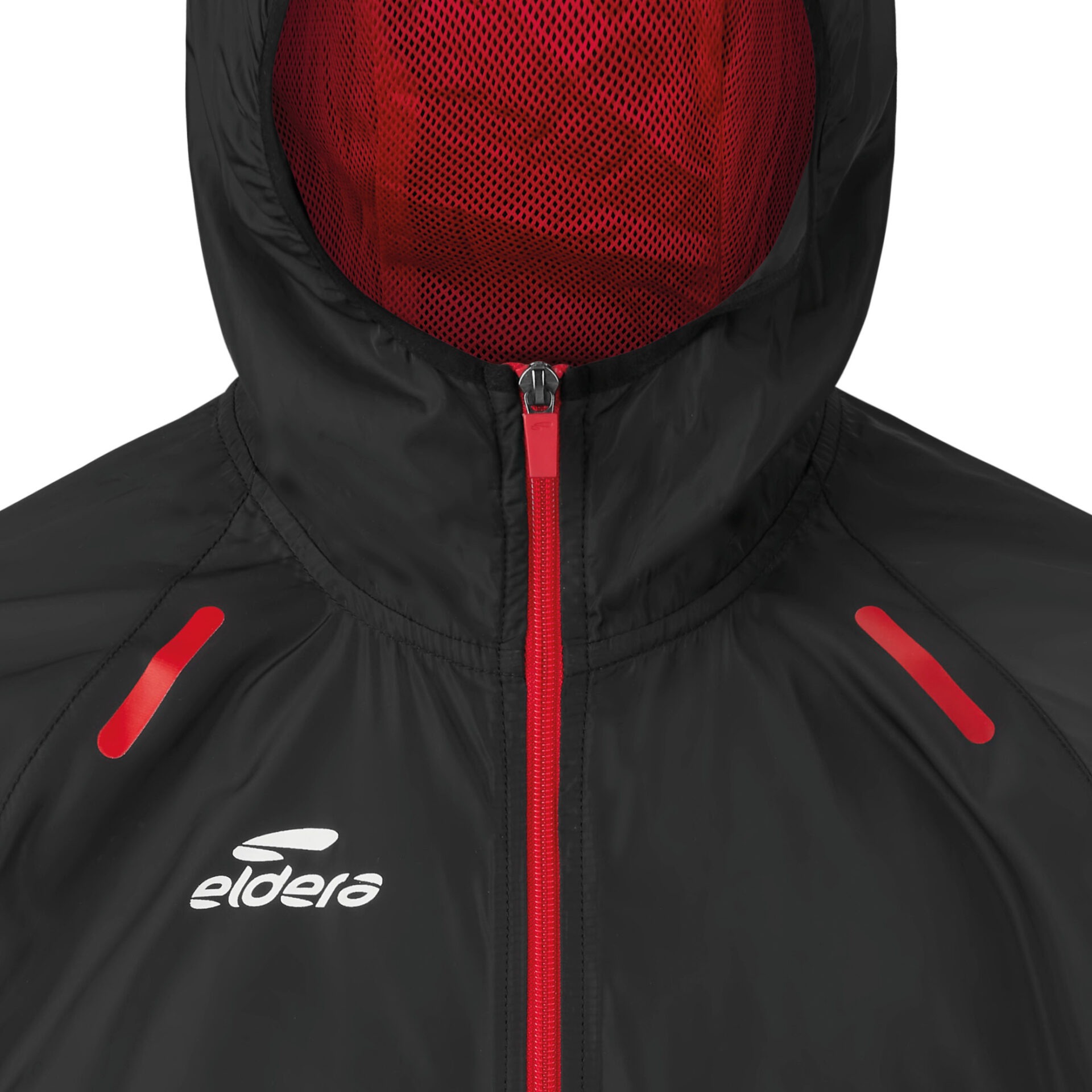 Coupe vent en polyester hydrofuge limitant l’entrée d’air afin de garder le chaud à l’intérieur. Membrane extérieure déperlante limitant la pénétration de l’humidité. Capuche doublé en tissu mesh dans un coloris constraté. Col montant apportant une protection supplémentaire. Poches latérales zippées, également dans un coloris contrasté. Possibilité de serrage à la taille à l’aide d’un élastique bloquant. Manches élastiquées. Détails printés contrastants sur la partie supérieure. Logos printés. Composition 100% polyester.