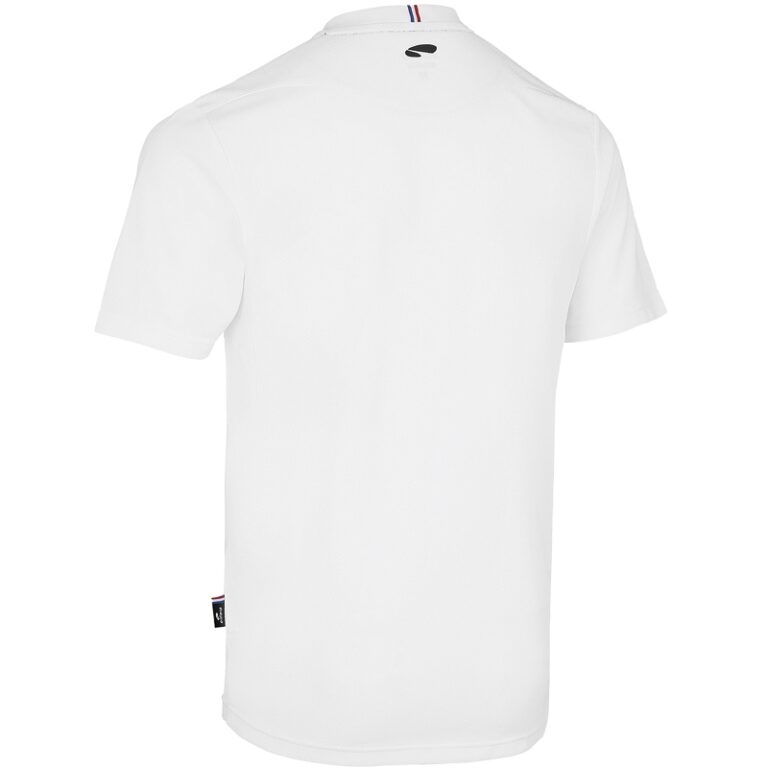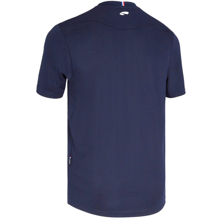 • Face avant en polyester, dos en mesh • Empiècements mesh sous les bras permettant une ventilation optimale de la transpiration • Cols bords-côtes avec bande de propreté et détail tricolore • Logo brodé devant, logo printé arrière • Composition 100% polyester.