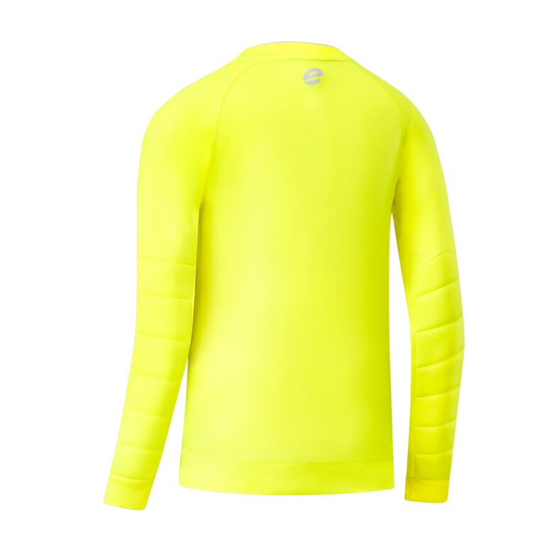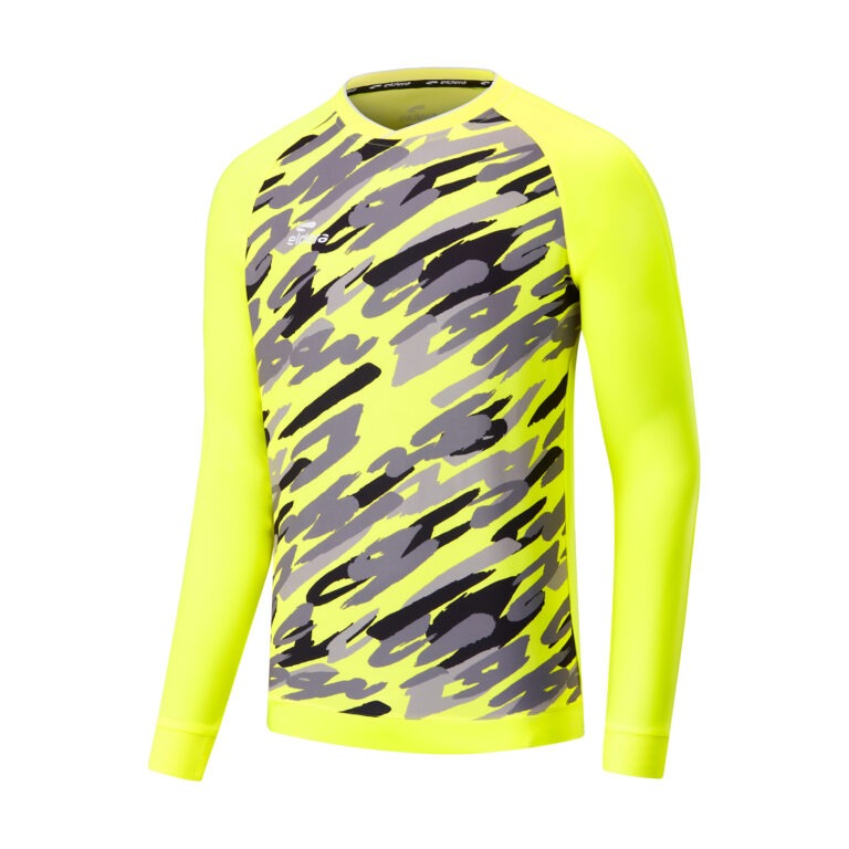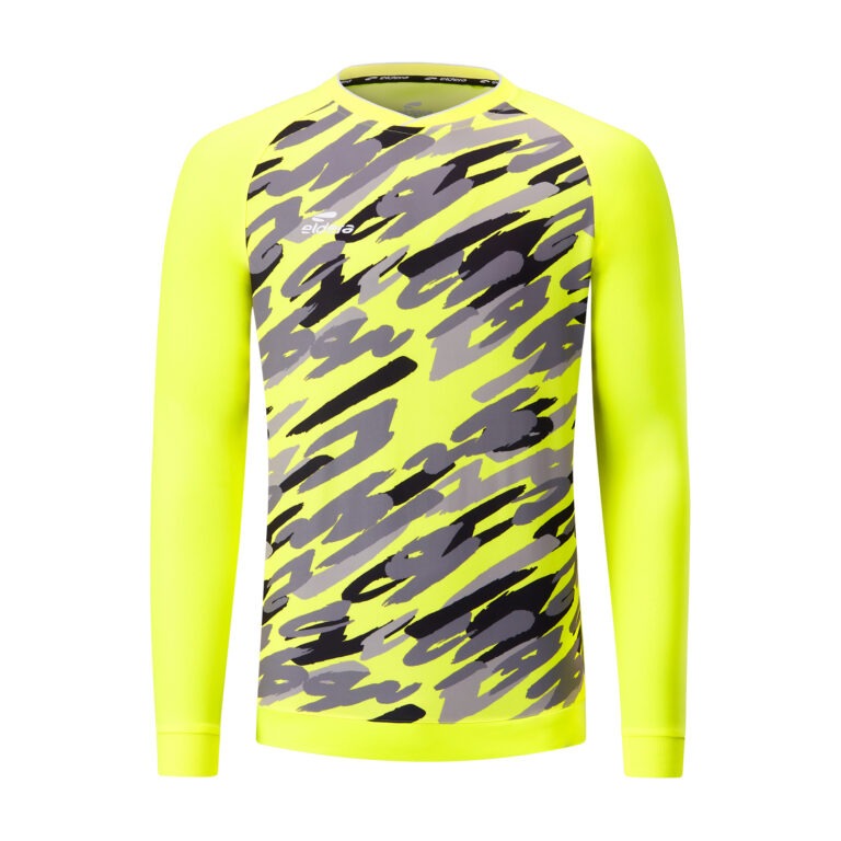 Maillot gardien avec motif sublimé “camouflage” sur la face avant. Renforts matelassés sur les coudes, protégeant des chocs et des impacts lors de la pratique. Tissu en polyester permettant une grande liberté de mouvement. Col en bords-côtes avec bande de propreté intérieure. Disponibles en couleurs haute visibilité. Logo brodé poitrine et logo printé dans le dos. Composition 100% polyester.