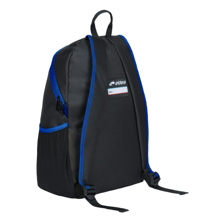 Sac à dos avec compartiment central zippé. Présence d’une poche latérale avec filet, idéal pour insérer une gourde ou d’autres objects. Possibilité d’ajuster les bretelles à l’aide de boucles passantes. Etiquette nominative sur l’extérieur du sac pour faciliter son identification. Anse supérieure doublée. Logo Eldera printé sur l’avant du sac avec fond contrastant. Format 42x31x15cm / 19 litres. Composition 100% polyester.