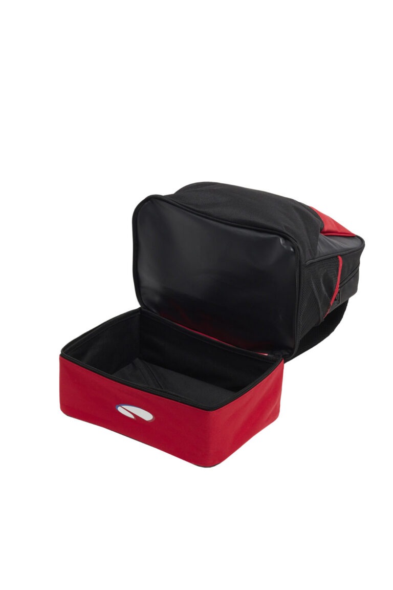 Sac à compartiments multisport en polyester avec de nombreuses poches zippées dont une grande centrale. Compartiment inférieur avec fond amovible pour autre type de rangement. Poche latérale avec filet, idéale pour insérer une bouteille d’eau par exemple. Détail tricolore sur la hanse supérieure. Patch nominatif sur la face arrière permettant d’inscrire un nom/prénom ou numéro de téléphone. Bretelles de transport réglables et renforcées. Logos printés. Composition 100% polyester.