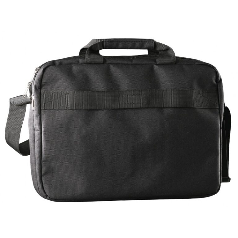 • Sacoche pour ordinateur portable et documents • Polyester résistant à l’abrasion et à l’humidité •Sangle de transport réglable • Scratch extérieur avec double poches • Poches zippées supplémentaires • Composition 100% polyester.