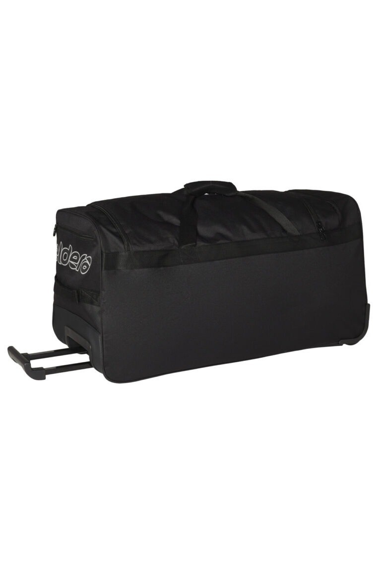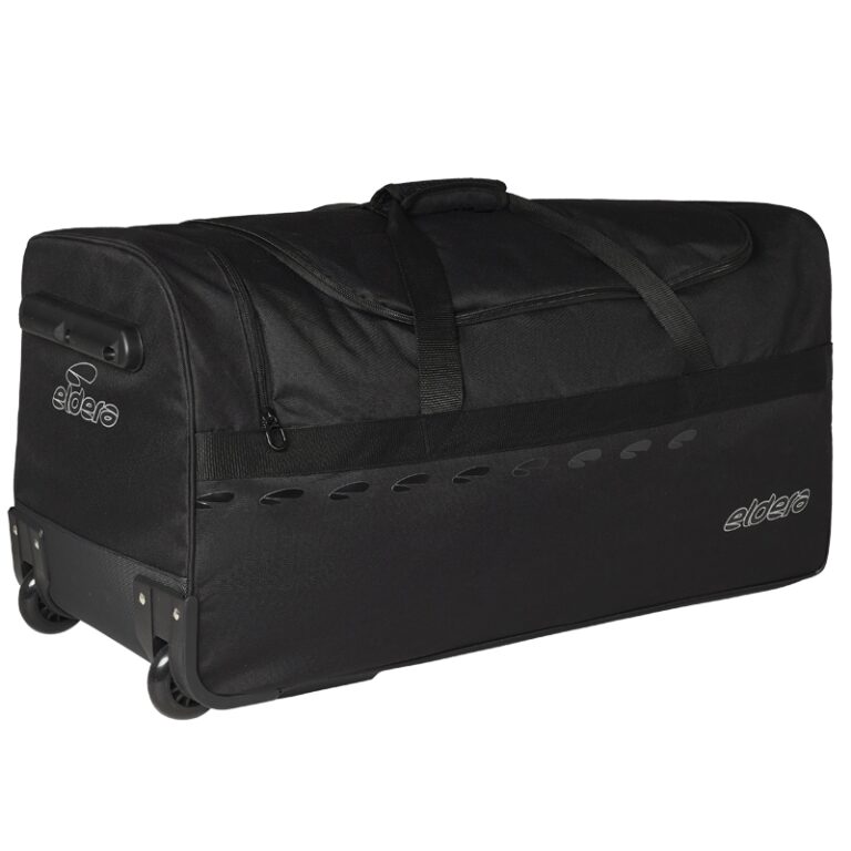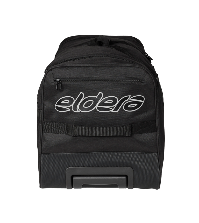 • Corps en polyester 600dtex, résistant à l’abrasion et à l’humidité • Poignée téléscopique et roulettes de transport • Grande poche principale, poche latérale profonde et petite poche zippée • Logos Eldera printé et réfléchissants • Composition 100% polyester.