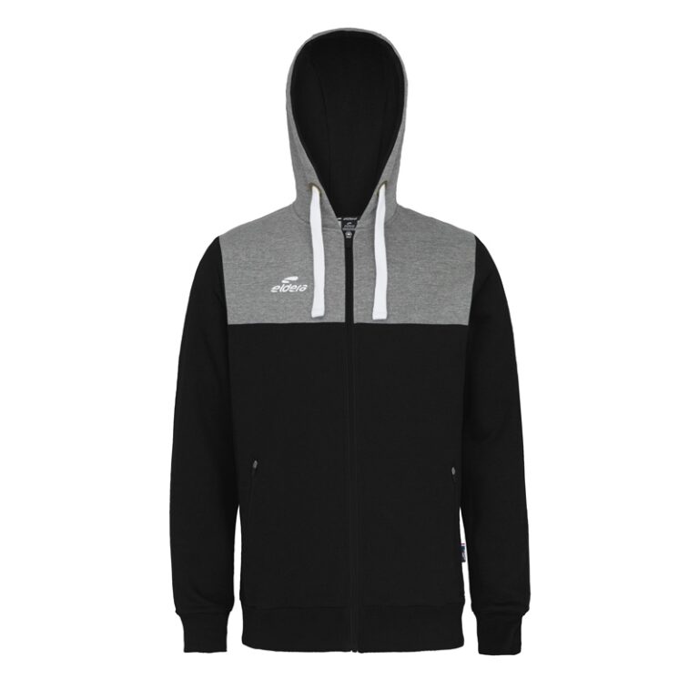 Gamme molleton bi-matière coton et polyester confort. Intérieur gratté, apportant douceur et toucher duveteux. Intérieur de la capuche en coloris opposé. Cordon de serrage cou interchangeable (à partir de la taille S) avec œillets métalliques. Fermeture centrale et poches latérales avec zips auto bloquants. Empiècements sous bras, ceinture et finition des manches en bords-côtes. Logos 3D printés. Finition avec bande de propreté col intérieur et détail tricolore latéral. Composition 50% coton et 50% polyester.