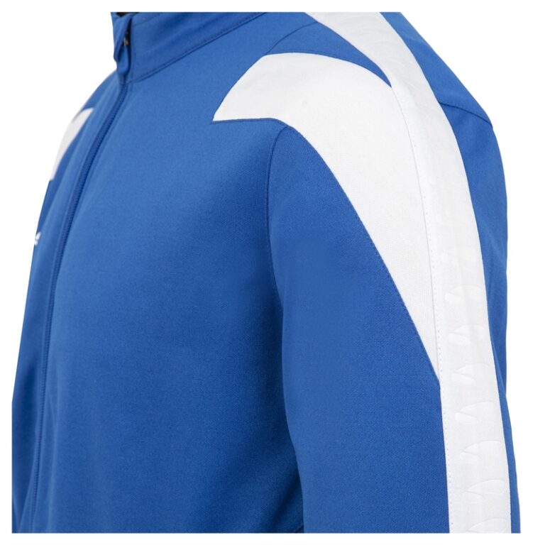 Veste en polyester avec finition rib à la taille, au col ainsi que sur le bout des manches. Détails logo sur la bande supérieure par embossage. Fermeture à l’aide d’un zip auto-bloquant. Logos printés 3D avant et arrière.