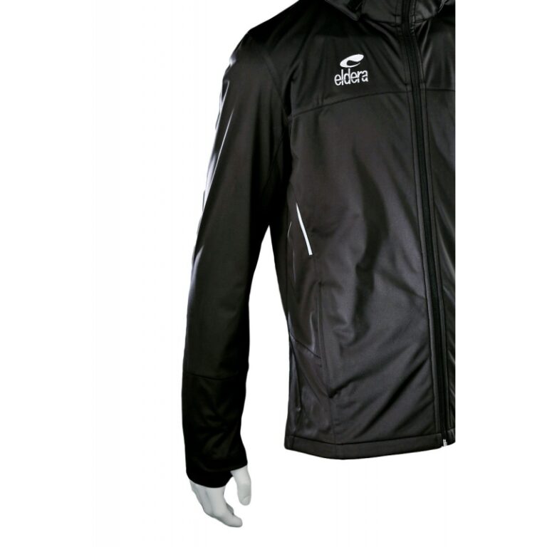 Softshell en polyester et élasthanne avec intérieur doublé en polaire. Membrane extérieure épaisse, gardant la chaleur près du corps. Capuche amovible à l’aide d’un zip. Bandes réfléchissantes latérales. Inserts pour les pouces. Poches zippées extérieures et intérieures. Logos brodés. Composition 94% polyester 6% élasthanne.